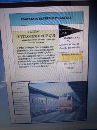 ACCADEMIA "LABORATORIO PERMANENTE DI FORMAZIONE TEATRALE"INAUGURA LA 9a STAGIONE ALLO SPAZIO C.R.A.L. di Cinisello Balsamo il giorno 3/10/2023 dalle ore 21 alle ore 23, con saggio di fine anno : TUTTE QUESTE VITE QUÌ . Una produzione che si snoda durante tutto il percorso di laboratorio, tra esperienze di scrittura creativa e giochi collettivi. Un viaggio... ove le storie delle persone si incrociano, si accavallano e ci raccontano tanto di loro.